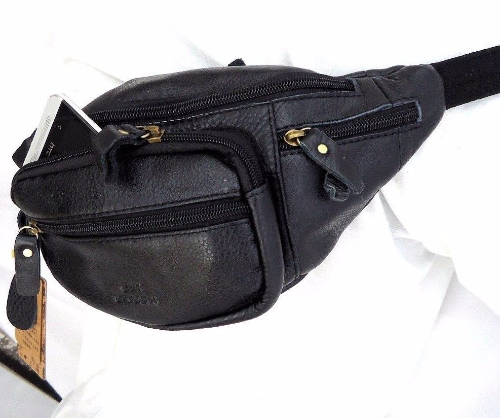Genuine Vintage Leather Wallet Bag Waist Pouch Backpack Purse Coin Women and Men Sling Backpack Cellphone Black